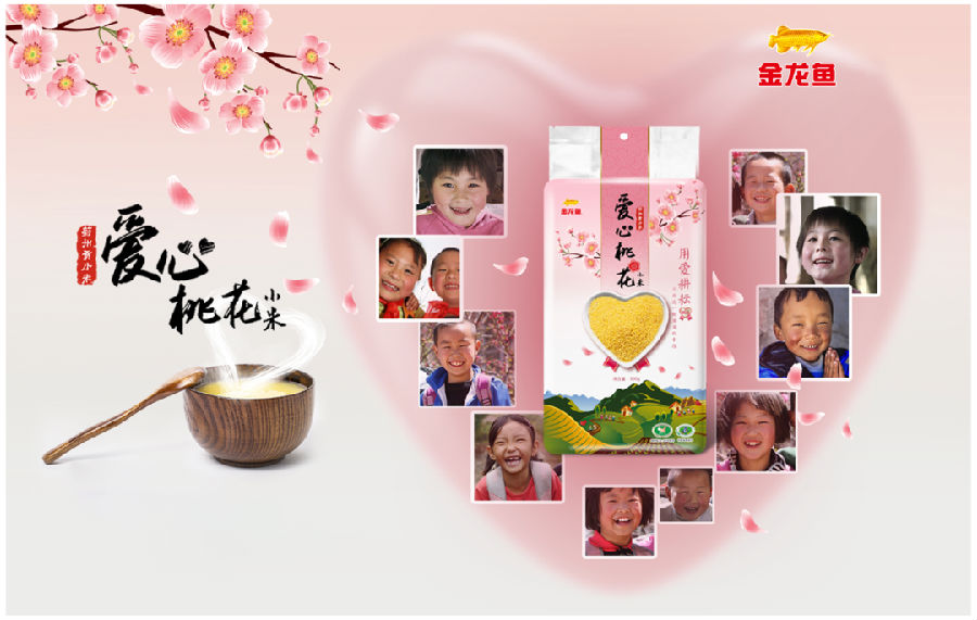 河北蔚县的小米品质优良,营养丰富,几百年前就成为贡品享誉京城,被列为“四大贡米”之一。然而由于销售渠道有限等原因,蔚县小米产业一直不大,农民收入有限,蔚县长期位列国家级贫困县。2013年起, 员工和社会爱心人士开始结对帮扶蔚县果庄子小学贫困学生,在帮扶过程中,发现了蔚县的优质农产品——小米。2015年起, 溢价收购了果庄子贫困家庭的谷子,封装成小袋“爱心小米”,由公司员工认购,将溢价部分全部返还给当地贫困农户。2017年, 集团董事长郭孔丰亲赴蔚县考察,正式发起小米产业精准脱贫项目,建立了订单种植、溢价收购、品牌营销、利润返哺的蔚县产业精准脱贫模式,深度参与贫困县产业脱贫攻坚工作。2018年在蔚县投资建成万吨级小米加工厂,帮助蔚县政府将贡米产业打造成特色扶贫产业,形成小米生产基地种植、合作社组织收购、金龙鱼品牌销售等环节的产业链,辐射带动贫困户参与产业发展。