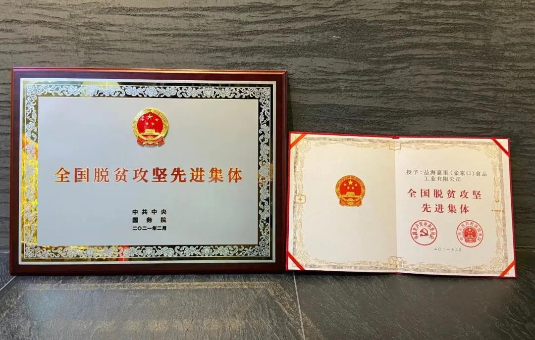 (张家口)食品工业有限公司(以下简称“张家口工厂”)荣获“全国脱贫攻坚先进集体”称号。